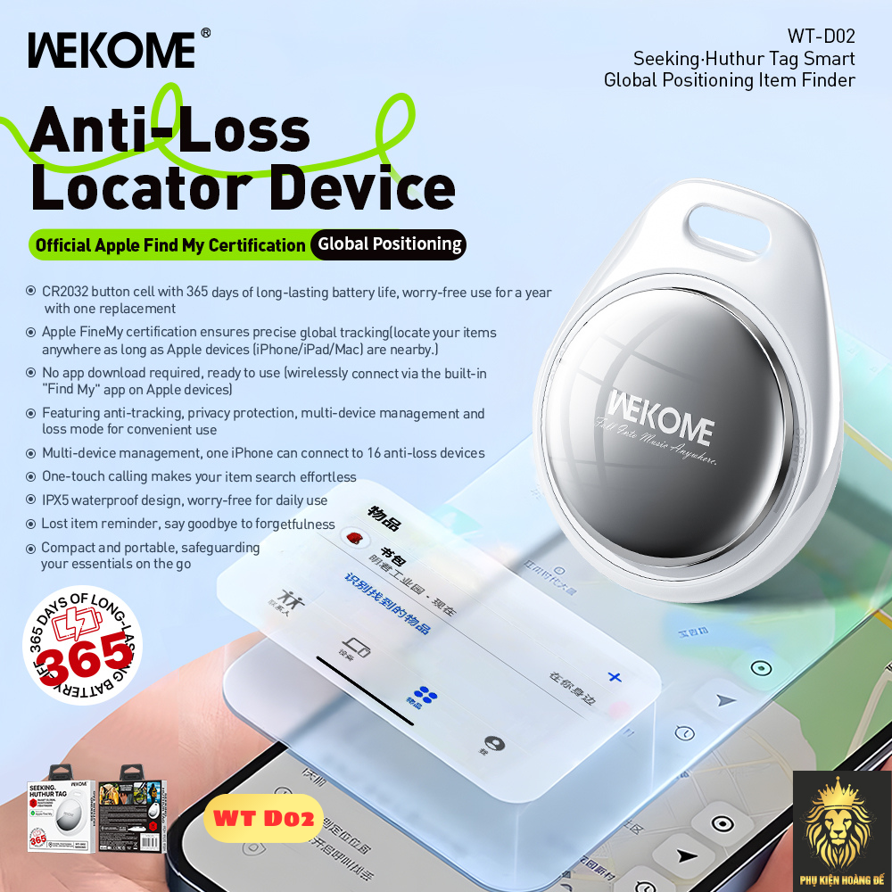 Trong cuộc sống hiện đại, việc thất lạc những vật dụng quan trọng như chìa khóa, ví tiền, balo hay túi xách là điều rất dễ xảy ra. Hiểu được nhu cầu đó, WEKOME WT-D02 Smart Global Positioning Item Finder ra đời như một giải pháp định vị thông minh, tiện lợi và hiệu quả, đặc biệt dành cho người dùng iPhone. ĐỊNH VỊ AIRTAG APPLE WT D02 giúp bạn kiểm soát và bảo vệ tài sản cá nhân mọi lúc, mọi nơi một cách đơn giản và an tâm.
