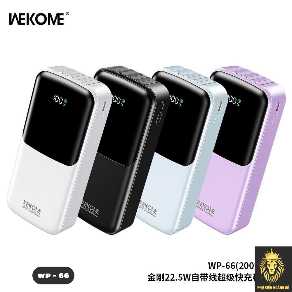 Sạc dự phòng WEKOME SDP 66 (thuộc dòng WP-66 quốc tế) là một trong những sản phẩm nổi bật với dung lượng lớn 20.000mAh, hỗ trợ sạc nhanh 22.5W, tích hợp nhiều cổng và cáp sạc đi kèm, mang lại trải nghiệm sử dụng cực kỳ tiện lợi và linh hoạt.